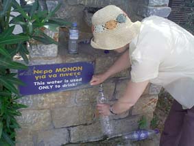 | | Holiday in Stoupa and Tolon - June 2002 We arranged this holiday through our local travel agent. The Holiday operator was "First Choice" and the Airline was "Air 2000". We flew from Manchester to Kalamata and both flights took off and landed during daylight (but only just). This is important to us as it doesn't make for a good start to a holiday if we land at 3am. This was a two-centre holiday and we arranged a hire car in advance. With hindsight this was a bad move and I'll tell you why: | | The only car we could get was a Renault Twingo. This was a fine little vehicle - economical, easy to drive and ideal for the *very* narrow roads of Stoupa and the surrounding area. Unfortunately, I'm used to a high-powered automatic so trying to operate a gear lever with the wrong hand while driving on the wrong side of the road was quite tricky. In addition, the Twingo did not have air conditioning and you *really* need this in summer! Laughingly, it was equipped with a canvas sun-roof - as if any sane person would want to open that when the sun is beating down and it's over 30'C in the shade! We didn't use the car *every* day. |  | | The final drawback was that we had to drive from the airport in darkness when we arrived. In addition, we had to make a very long drive back again on the final day. So, with hindsight, it would be better to use the free coach to get between the hotel and airport and hire a car as needed. The choice of car would be better and the overall cost probably lower. I'd get a Hyundai Accent automatic but note that an auto may be double the cost of a manual gearbox car! At the time of writing, the average cost of unleaded petrol is 0.70 Euros per litre - a LOT lower than in the UK! The picture (right) is the "road" to our "Costas" apartment! |  | | We did not attempt to get the car down the narrow road to our apartment. Instead we parked it 100 yards away in the hotel car park (a dirt field with shady trees). The nice thing about having an apartment instead of an hotel room is that it had a fridge (for keeping bottled water cool) and cooking facilities. A washing machine was all we missed! Note that, as is usual everywhere in Greece, we were not allowed to put paper down the toilet. It has to be put in a pedal bin instead. This takes a bit of getting used to but the bin is emptied every day (and the bedding is changed, too - just like an hotel). |  | | The picture (above right) shows part of the "Costas" or "Kostas" apartment complex. Our room was at the rear, overlooking a barbeque area and an olive grove. The only noises we ever heard were insects - especially the "titziki" bugs which make a continual, loud, "grrrk, grrrk" noise during the daytime. Drinking water direct from the mountains is available from a tap 200 yards uphill on the main road. We refilled our bottles and put them in the 'fridge. This water is crystal clear, perfectly safe and tastes lovely. |  | | |